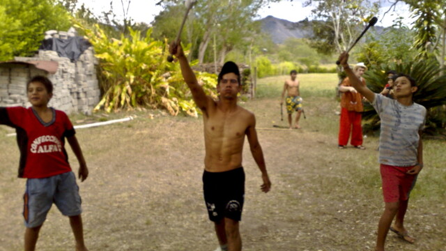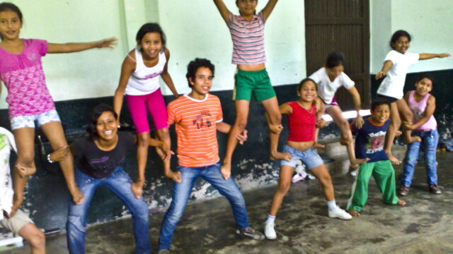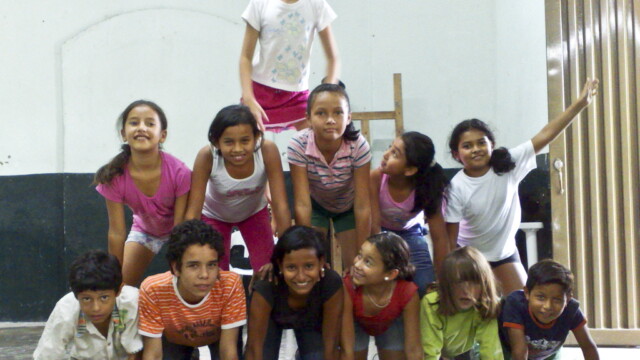 We returned to La Jagua a few years later and directed a second show with a mostly new group of young people from the village. The show was performed in the market town of Garzon, where it enthused some of the local children so much we ended up facilitating a theatre and acrobalance workshop for them.