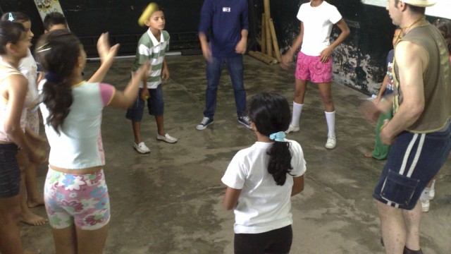 We returned to La Jagua a few years later and directed a second show with a mostly new group of young people from the village. The show was performed in the market town of Garzon, where it enthused some of the local children so much we ended up facilitating a theatre and acrobalance workshop for them.